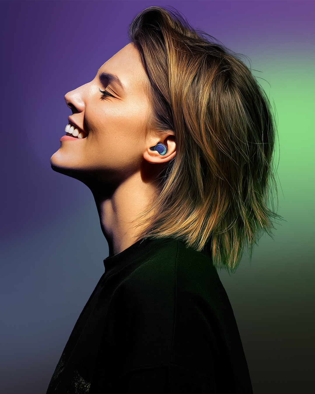 Radiant: Toutes les caractéristiques d’Ombré, plus une finition changeante de couleur Premium et des embouts en mousse à mémoire de forme supplémentaires pour un confort tout au long de la journée.