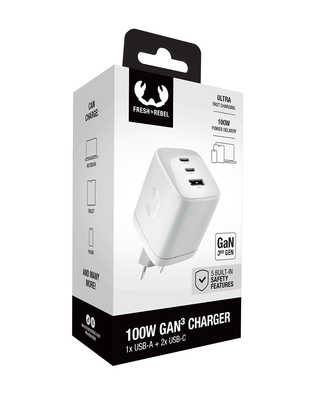 Het 100W GaN³-laadstation is uitgerust met vijf veiligheidsfuncties. Bescherming tegen overstroom, overbelasting, kortsluiting, overspanning en oververhitting. Beter voorkomen dan genezen.